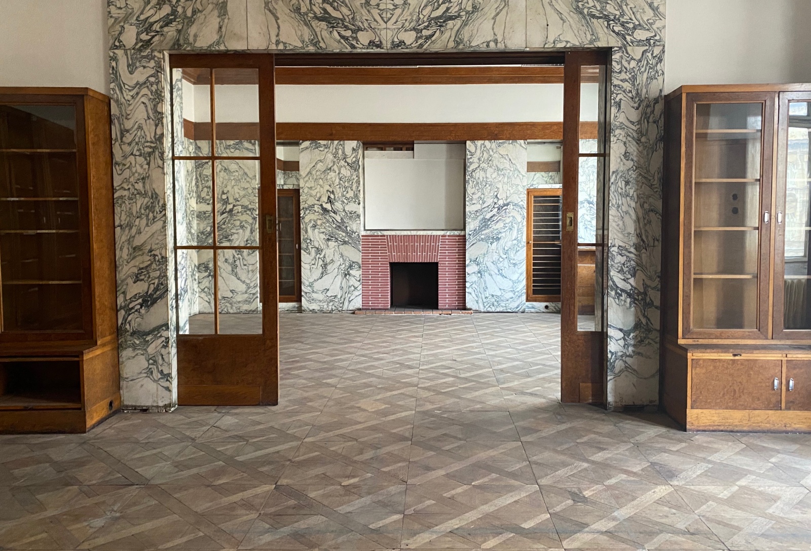 The interior of the Semler residence wasn't heated, and it was possibly even colder inside than outside that morning. Christian set up for what would be a long photo session. Meantime, I chatted with Magdalena and tried to find out as much as I could about the space (first, to learn some details to write about, and second, to get my mind off the cold). She was highly knowledgeable and patient with my questions, telling me about Loos’s love of symmetry and pointing out the types of marble and wood-paneling that the architect had used to imbue the rooms with different moods. In the music room, she said, Loos had opted for a yellowish elm to lend a playful feel; in the living room, he'd used a darker walnut to create a sense of opulence.