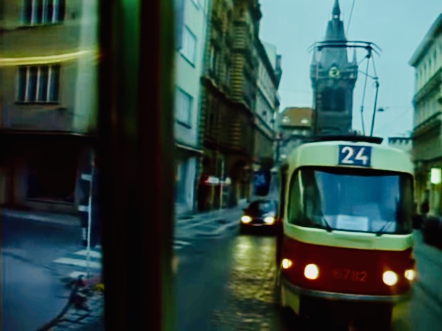 That said, Prague — just like Smith’s voice — is also hauntingly beautiful, even sad in spots. I feel some of that same odd pathos in viewing the shots of the tram trundling along the blueish, wet streets (Patti squirming in the seat) as I do in watching the Moody Blues performing on Charles Bridge just hours before the Warsaw Pact invasion.