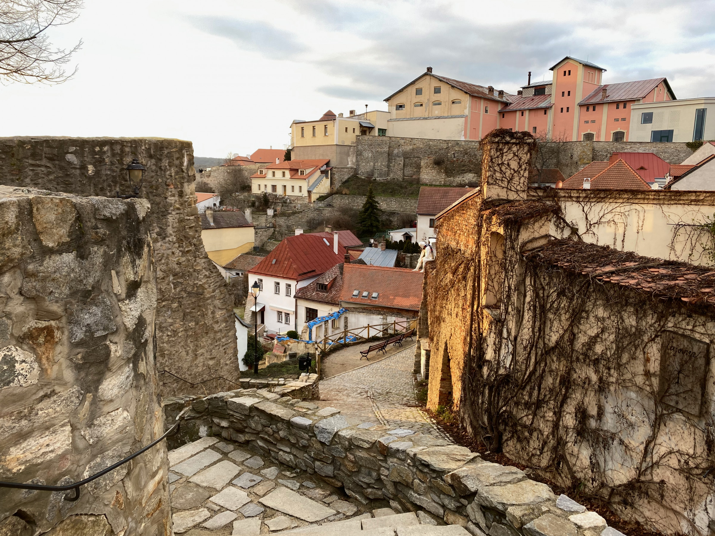 We poked around southern Moravia on the second day and made our way over to the nearby border town of Znojmo. As in Mikulov, we again tried to ignore the neglect and notice instead the town’s underlying prettiness: sweeping squares, a towering town hall and beautiful vistas out over the Thaya River at the back. As we roamed Znojmo’s deserted streets, we searched in vain for a decent place to eat or stay. These days, Znojmo has several pleasant hotels (though still not many good restaurants).