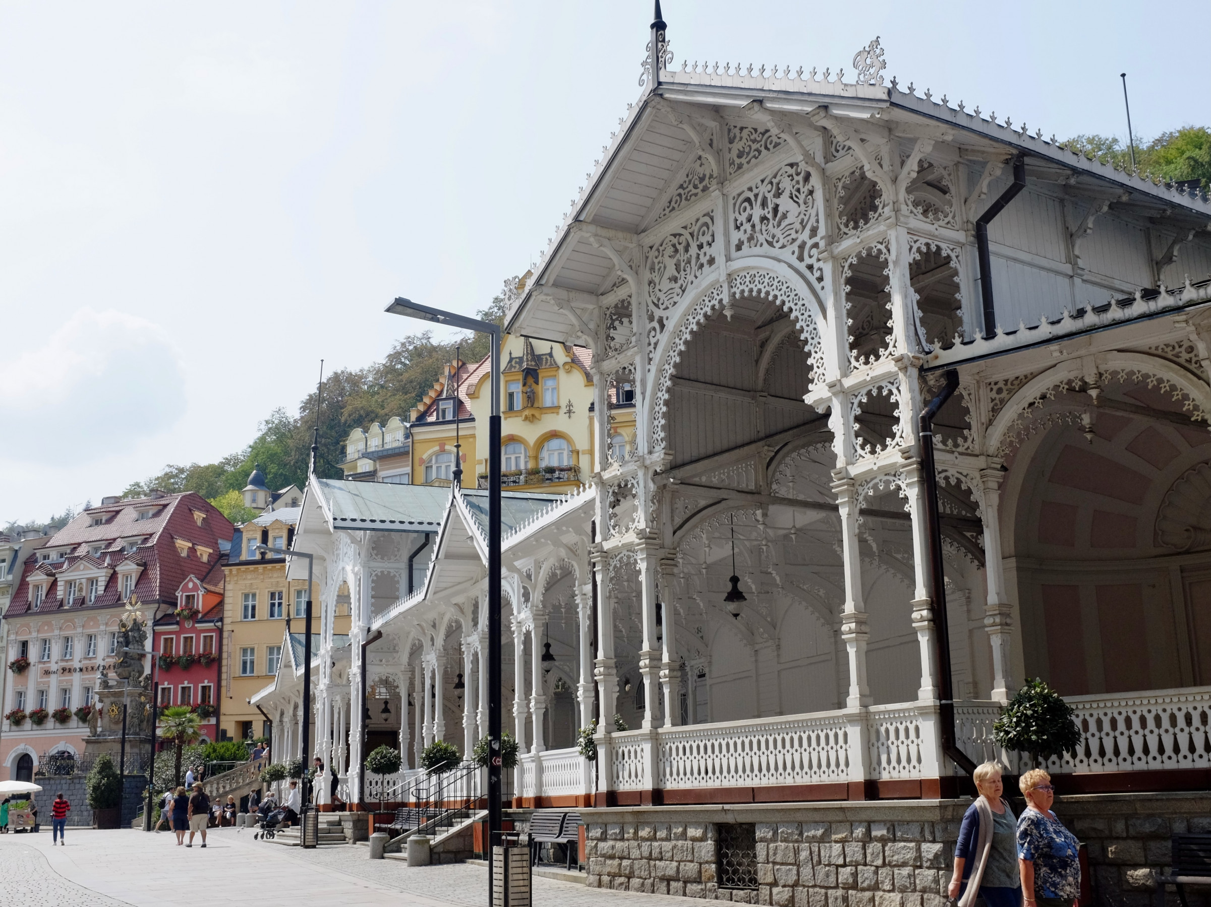 One of the historic colonnades at Karlovy Vary. We were mesmerized by the rows of spa patients strolling through the corridors and sipping spa water from ceramic spouts. Photo credit: Mark Baker