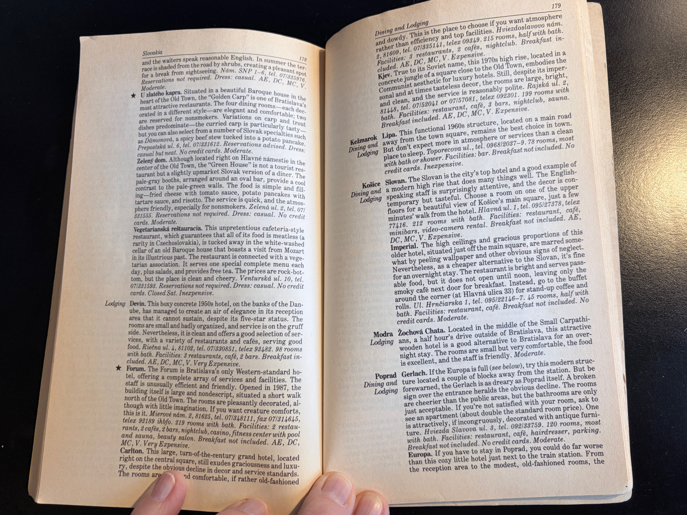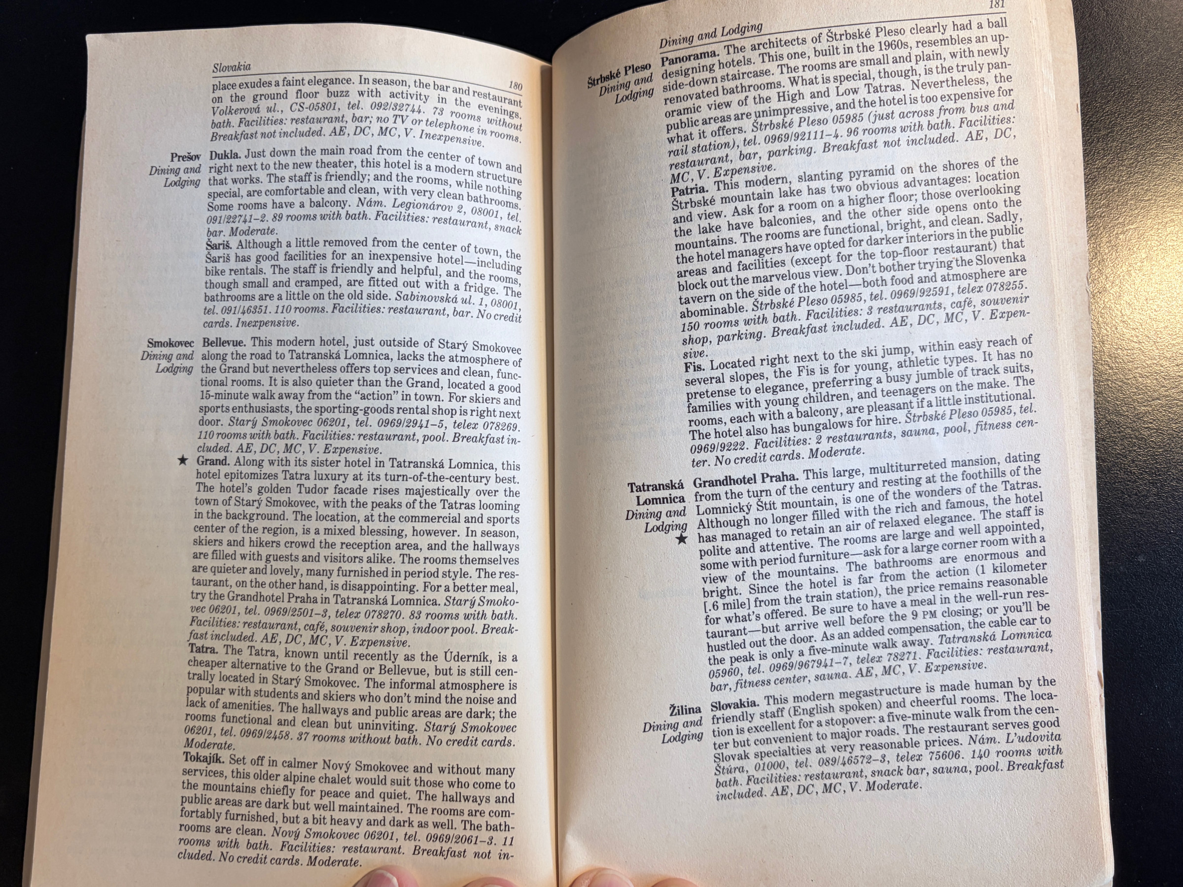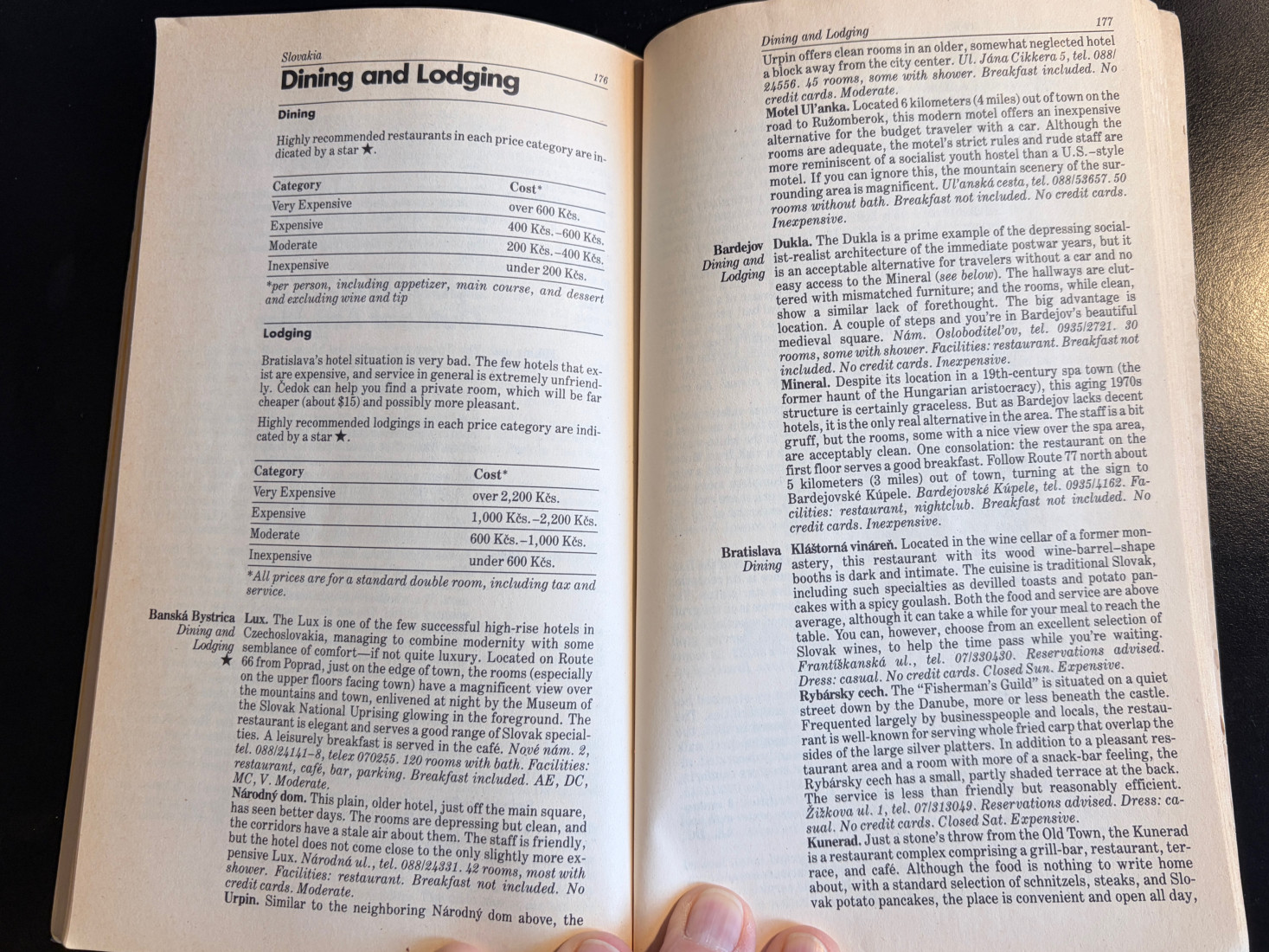 The opening page for Slovakia's restaurants and hotels. I noticed we went out of our way to say the hotel situation in Slovakia was bad -- but I'm not sure now why we wrote that.