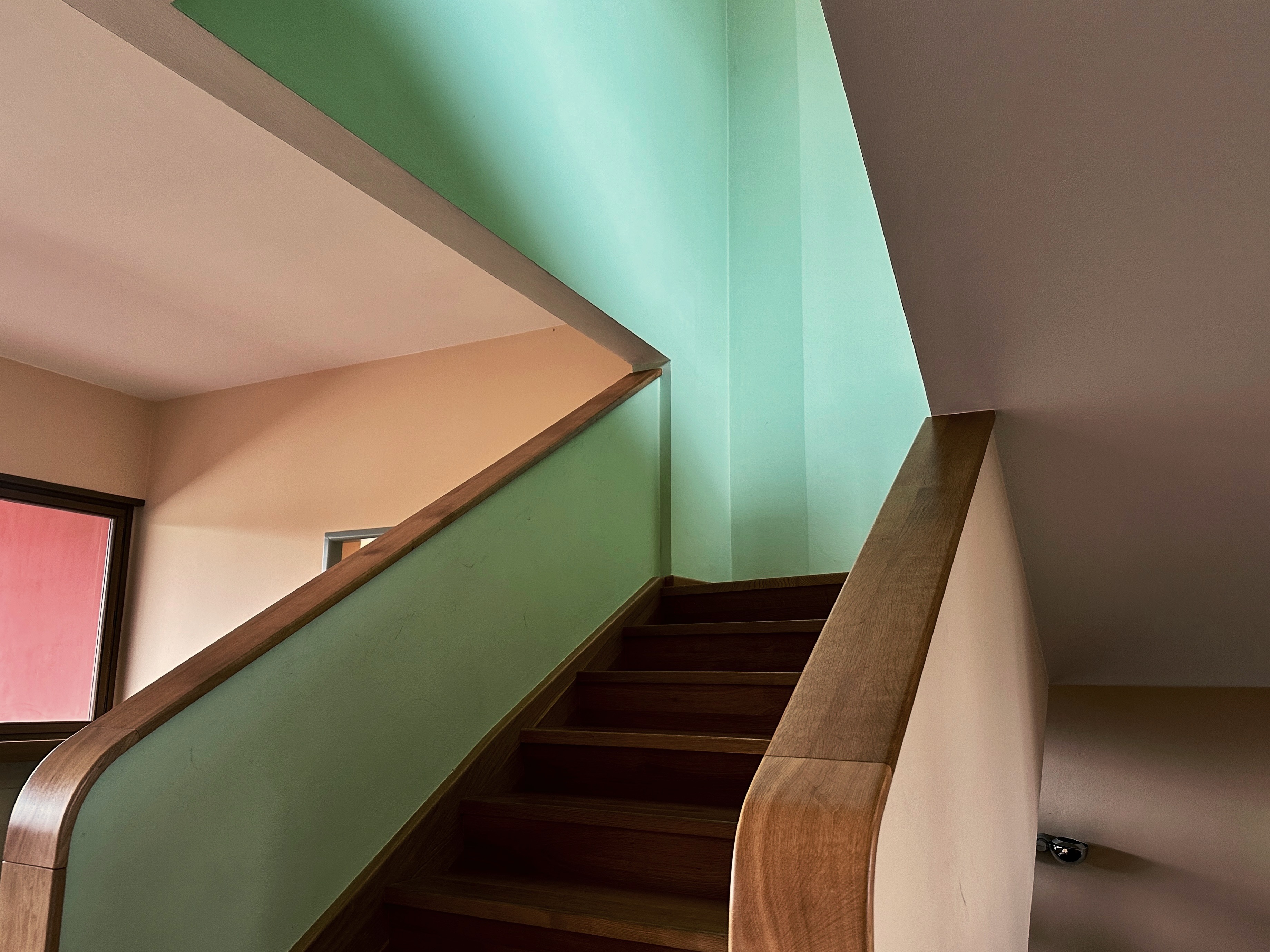 But the design took functionalism a step further, gently suggesting the influence of Czechoslovak artists, photographers and graphic designers who were then in thrall to the Europe-wide avant-garde. The playful colors on the walls, pastel greens and a deep salmon pink, evoke the 1930s and seem pulled straight from the canvases of ground-breaking, surrealist painters like Josef Šíma or Toyen. The angle of the main staircase to the living quarters plays tricks with the eye. Squint and one might be looking at an arty, abstract photograph from the period. The villa’s overall shape resembles a luxury ocean-liner, a cherished object for Czech modernists.